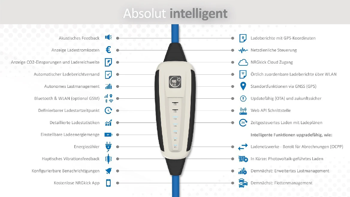 - Weitere Funktionen (z. B. OCPP, photovoltaik-geführtes Laden) über die NRGkick App upgradebar
